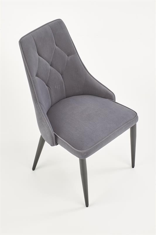 Acest scaun are structura metalica, imbracata in stofa gri. Pentru un grad de confort marit, sezutul este din spuma poliuretanica.