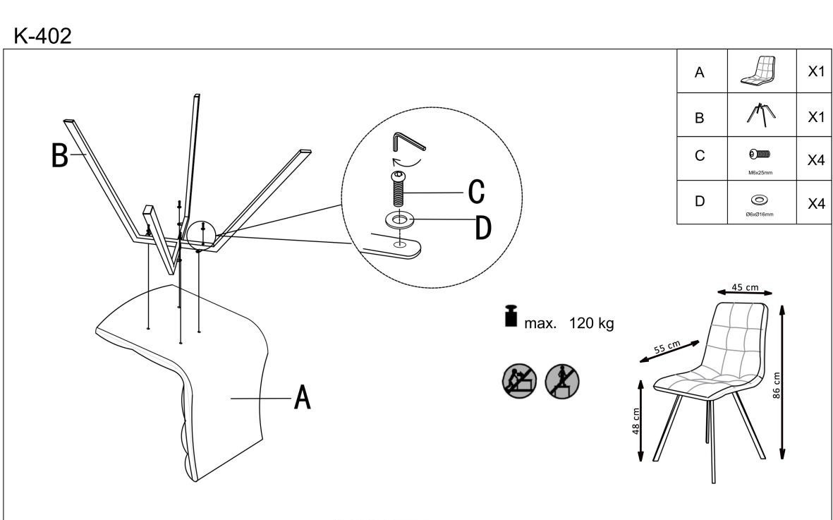 Acest scaun poate sustine o greutate de pana la 120 kg.