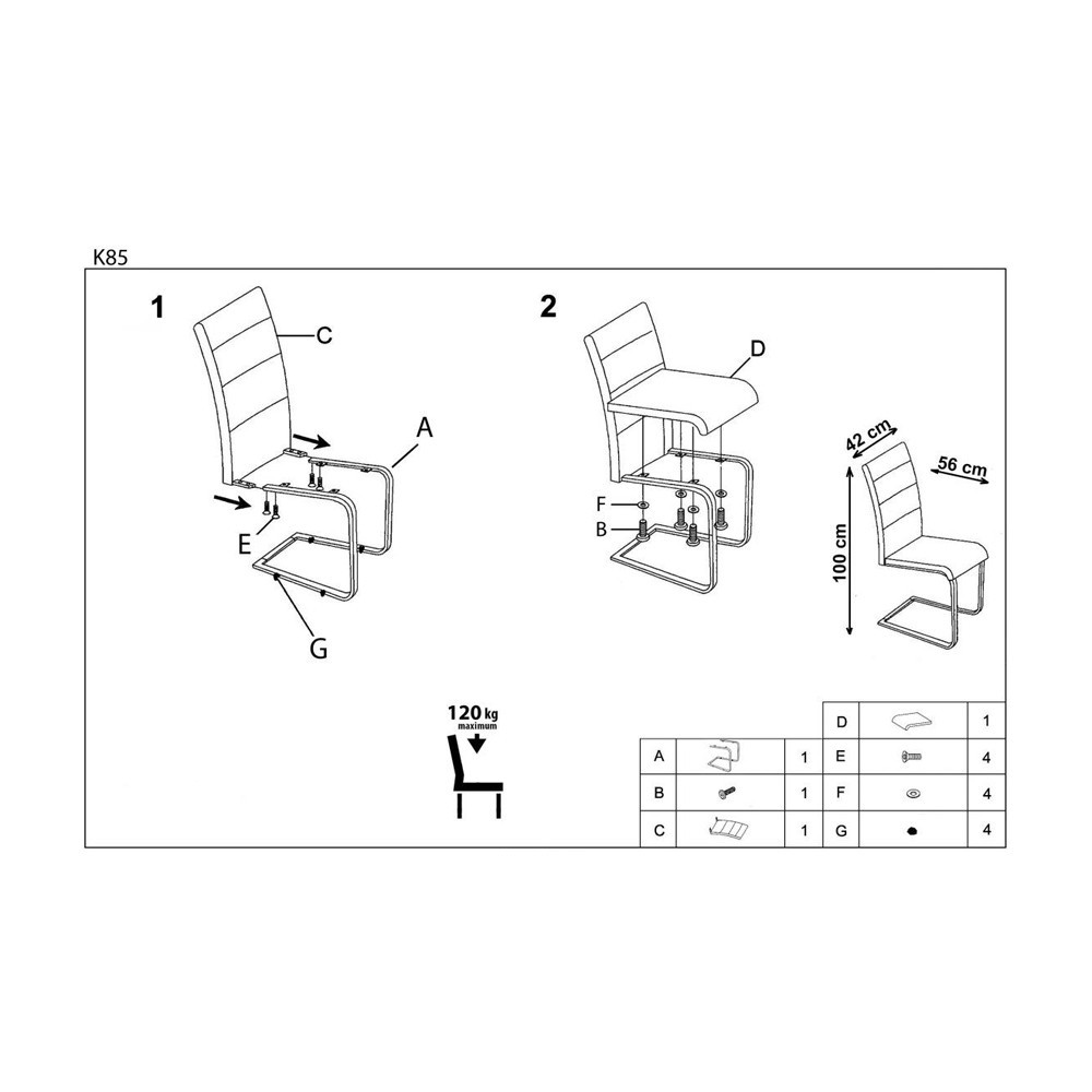 Scaunul K85 cu sezutul si spătarul tapitat cu piele ecologica iar picioarele din metal cromat, fac ca acest mobilier să fie nu numai de bun gust dar și elegant și foarte confortabil. Poate fi utilizat cu succes atat in living cat si intr-o bucatarie moderna.
