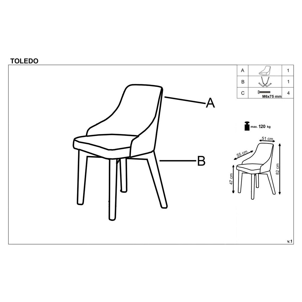 Scaunul Toledo are greutatea maxima suportata de 120 kg