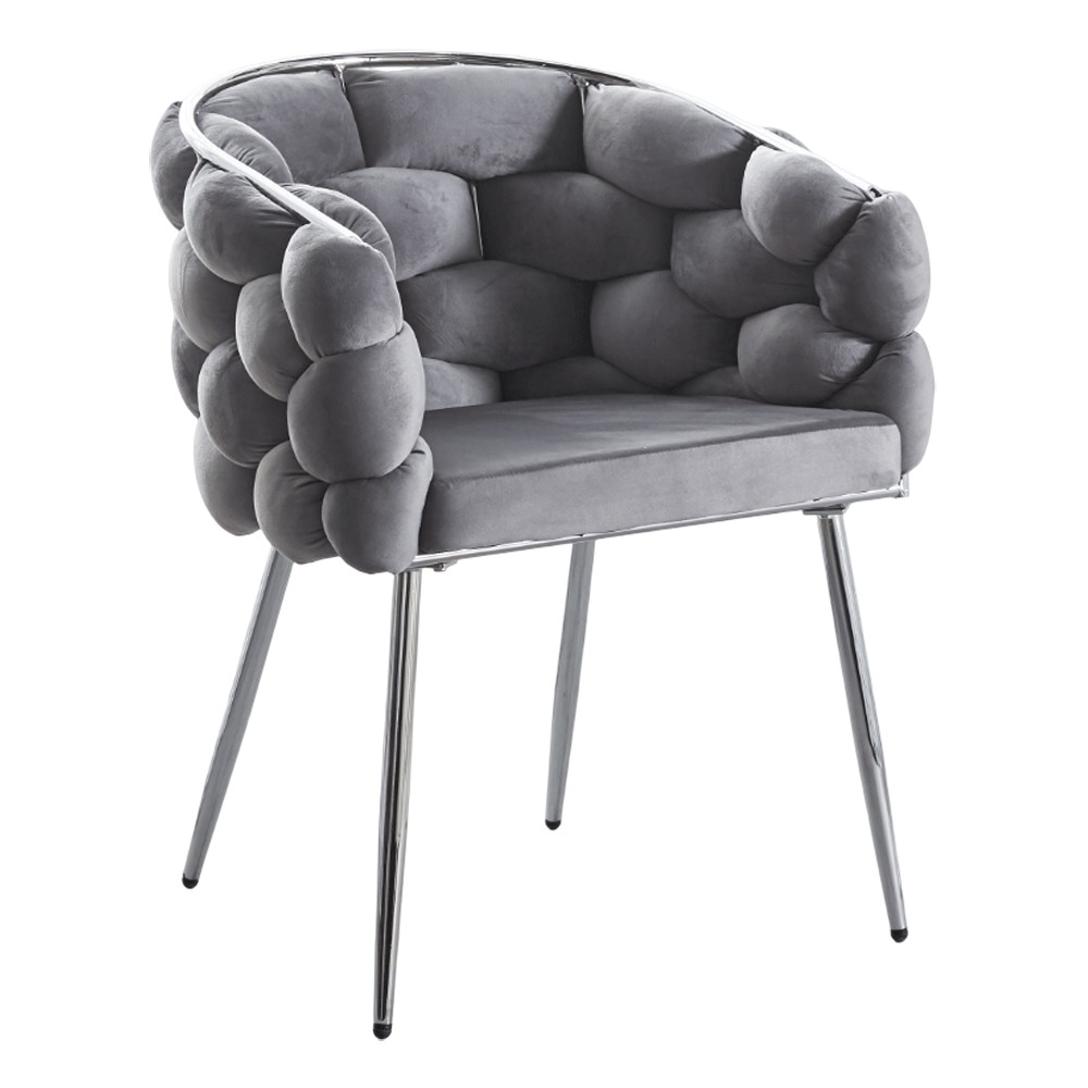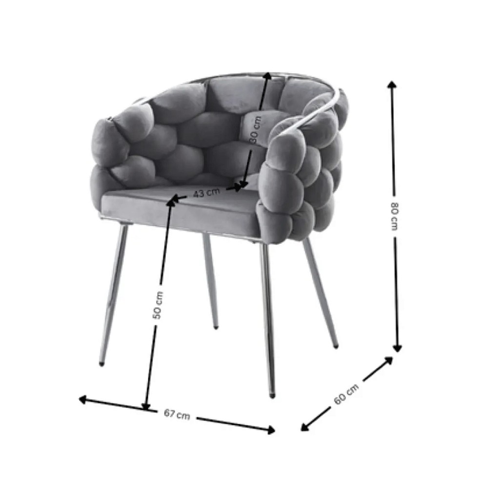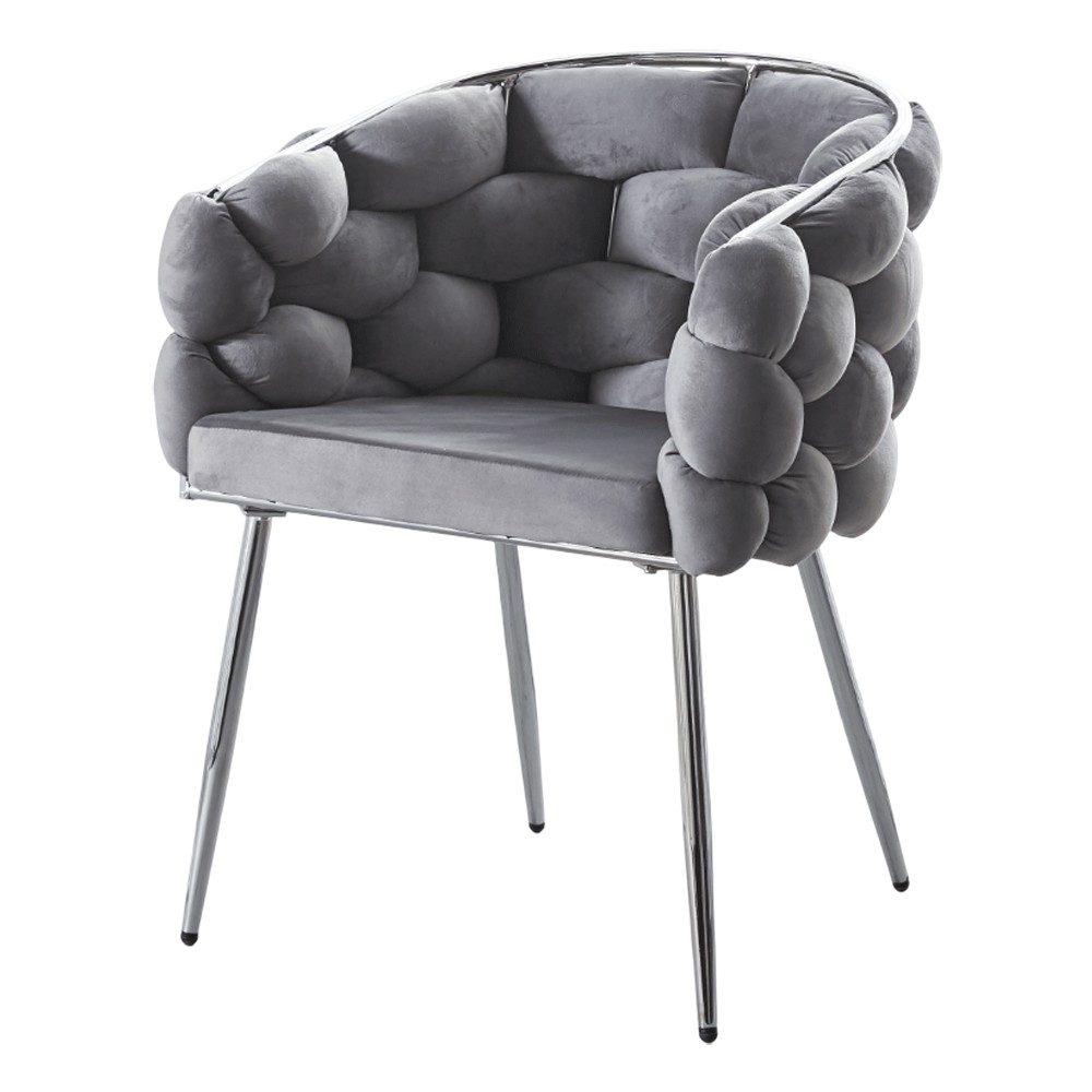 Scaun tapitat cu cadru metalic, AB14 ergonomic, living, catifea, 80x60x43 cm,100 Kg, Gri/Silver