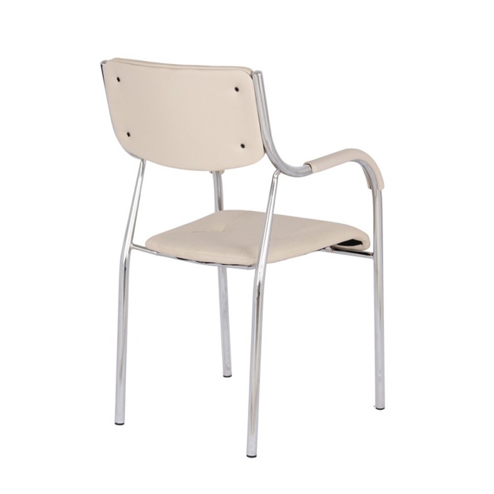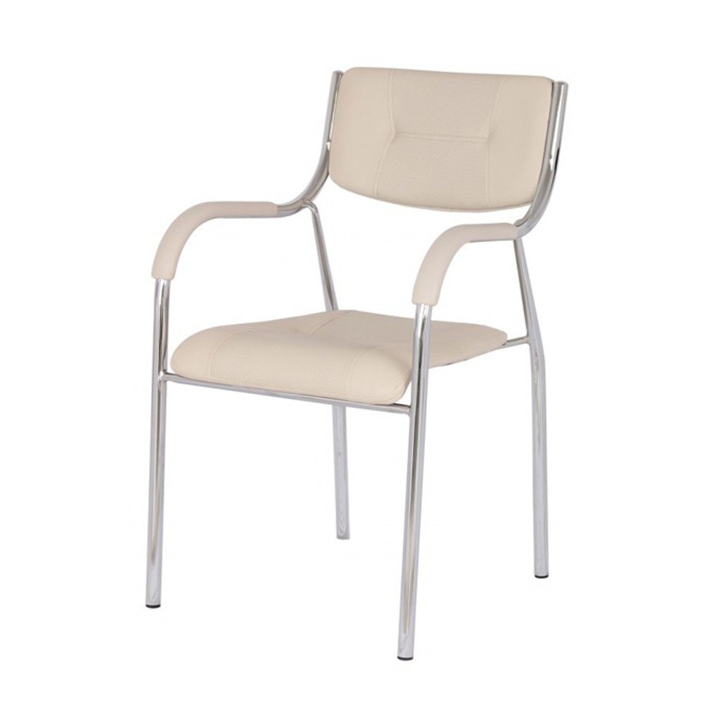 Scaun vizitator GN cu manere, cadru cromat, piele ecologica, 150 kg, bej