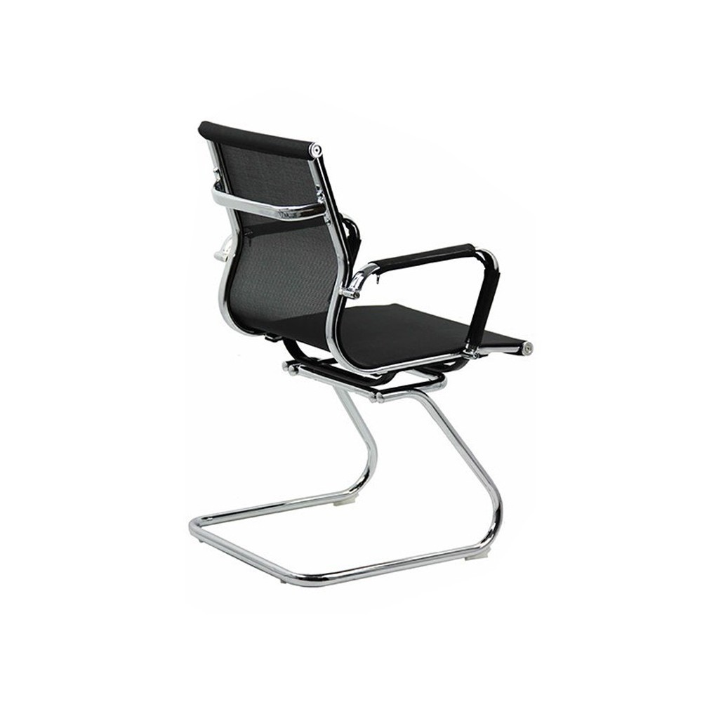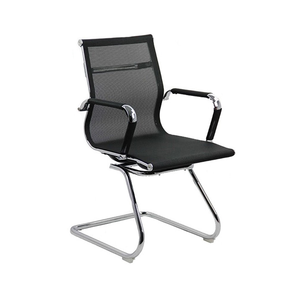 Scaun de vizitatori OFF 804 este fabricat pe un cadru gen sanie din metal cromat, sezut si spatar tapitate cu mesh, in culori moderne, iar manerele sunt metalice imbracate in mesh asortat cu sezutul si spatarul scaunului.