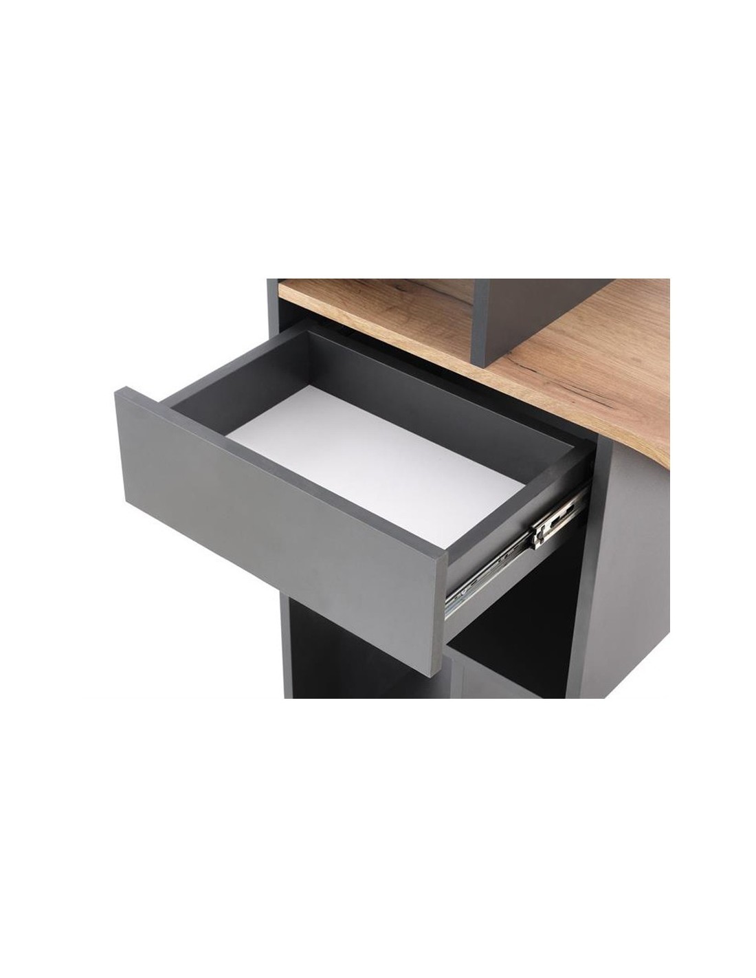 Creează-ți un spațiu de lucru organizat și inspirant cu biroul HM Conti. Datorită designului său modern și a multiplelor spații de depozitare, acest birou se adaptează perfect atât în dormitor, cât și în living. Structura robustă din PAL melaminat asigură durabilitate în timp.
