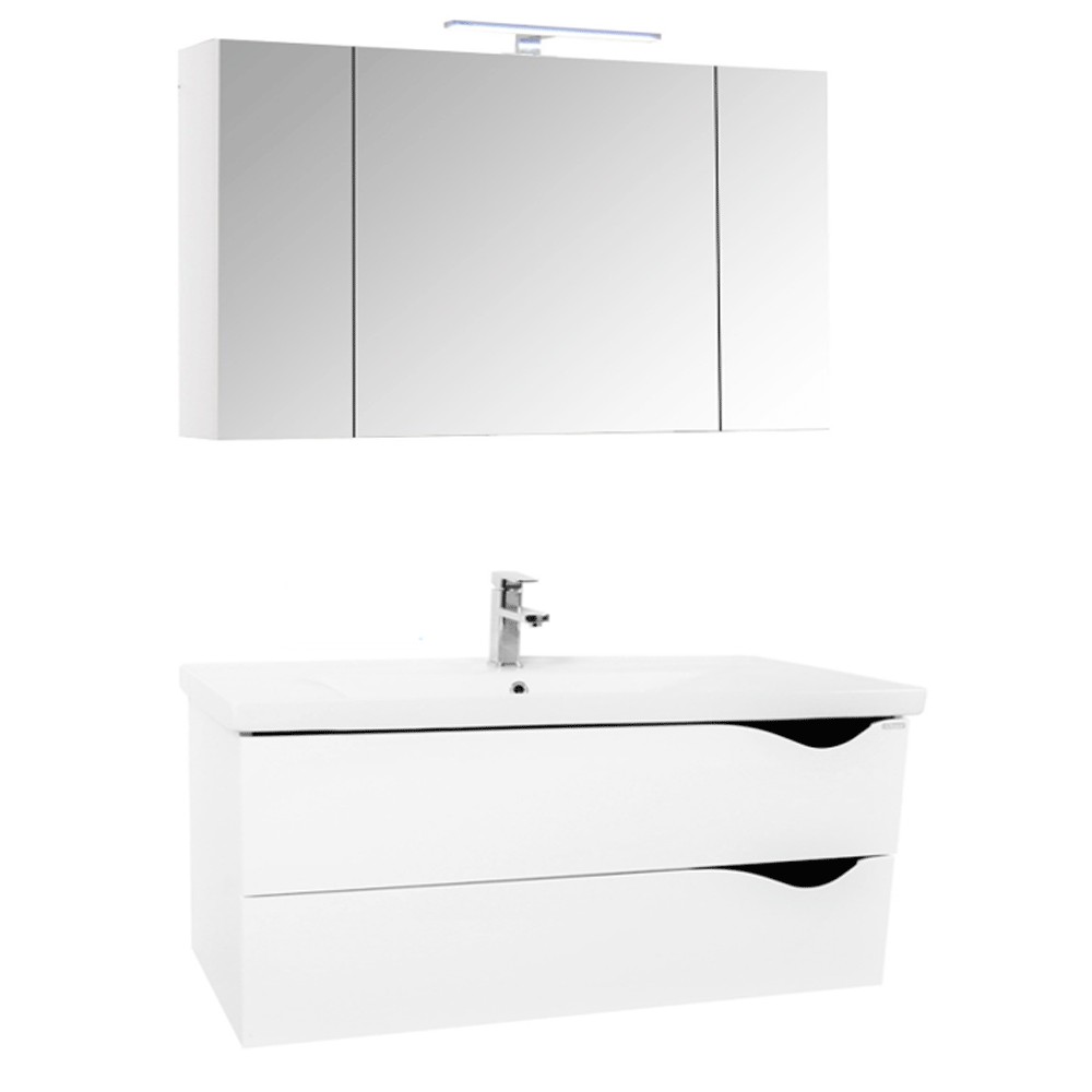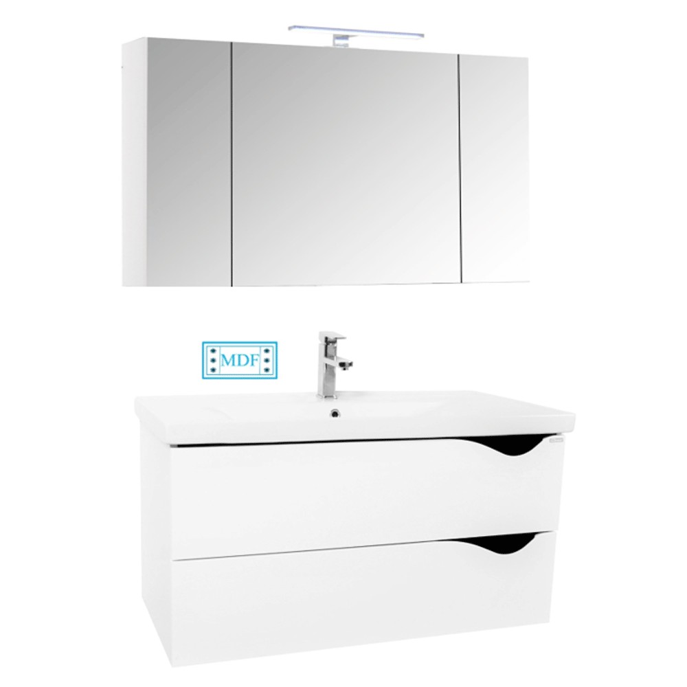 Iluminarea cu led (IP 44, putere 5w, 400lm) amplasata deasupra, accentueaza liniile fine ale mobilierului si asigura necesarul de lumina pentru activitatile din rutina zilnica.