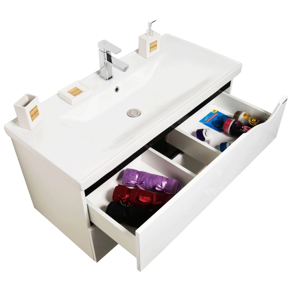 Mobilierul este compartimentat cu doua sertare incapatoare dotate cu sistemul soft-close si manere metalice contrastante ce-i confera un design aparte oferind personalitate baii dumneavoastra.
