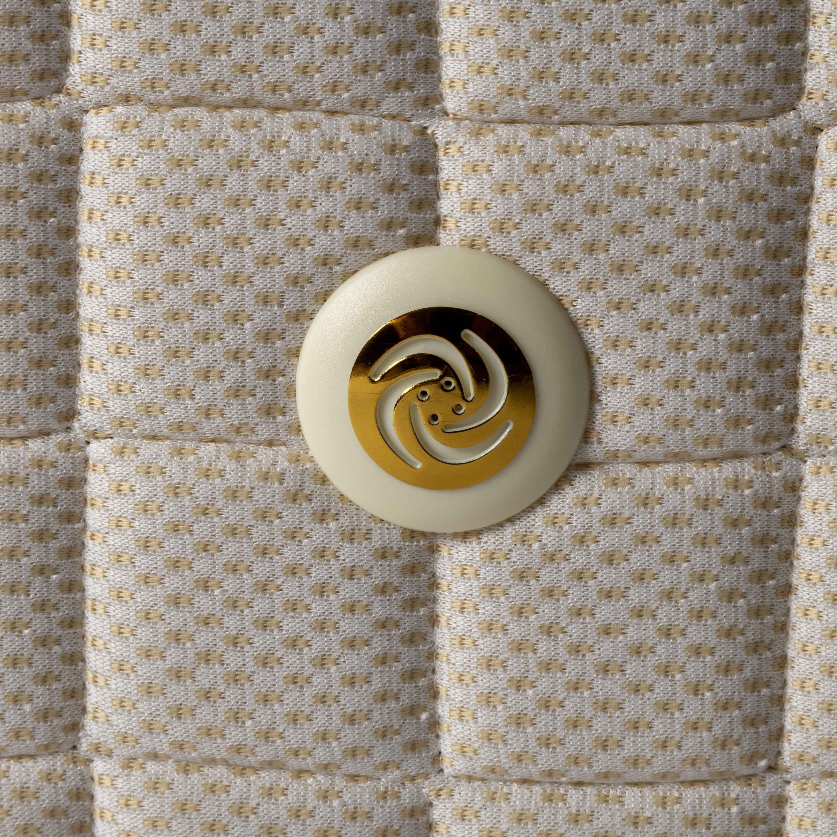 Materialul exterior este compus din 3 straturi matlasat complet din Jacquard (70%PP si 30% Poly) impreuna cu un strat de vatelina de 200gr / mp si TNT 20gr/ mp.