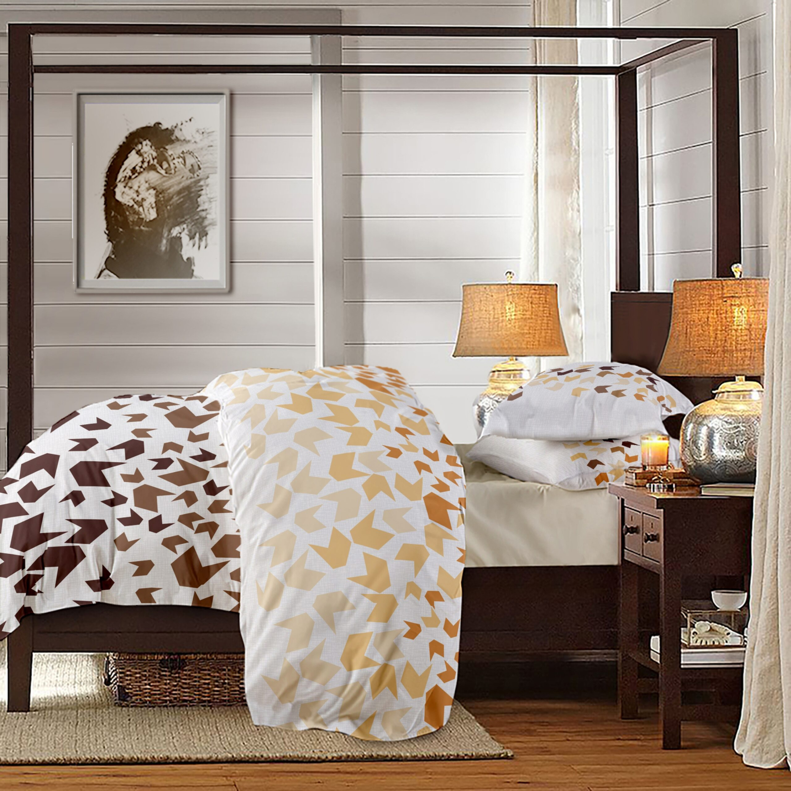 Lenjeria este disponibila cu imprimeuri florale delicate, cu motive geometrice indraznete, in nuante pastelate sau intense.