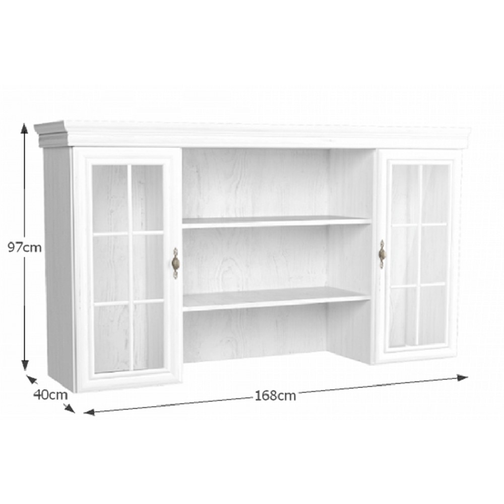 Vitrina este impartita in trei rafturi deschise si trei ascunse in spatele usilor duble cu sticla.Â
